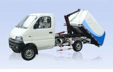 拉臂式垃圾車,又稱為:車廂可卸式垃圾車,勾臂式垃圾車,主要由汽車底盤、拉臂主油缸、附車架、翻轉架、支撐腿(選裝)、鎖緊架、鎖緊油缸及多路換向閥等組成。拉臂式垃圾車是在二類汽車底盤上裝有使車箱具有裝載和卸載功能的拉臂架裝置的專用汽車。它可實現(xiàn)車箱與汽車的結合和分離,同時對車箱的散裝貨物實現(xiàn)自卸作業(yè)。目前該車型已在車外得到廣泛使用,在國內(nèi)也常作為環(huán)衛(wèi)行業(yè)的垃圾收集運輸車。