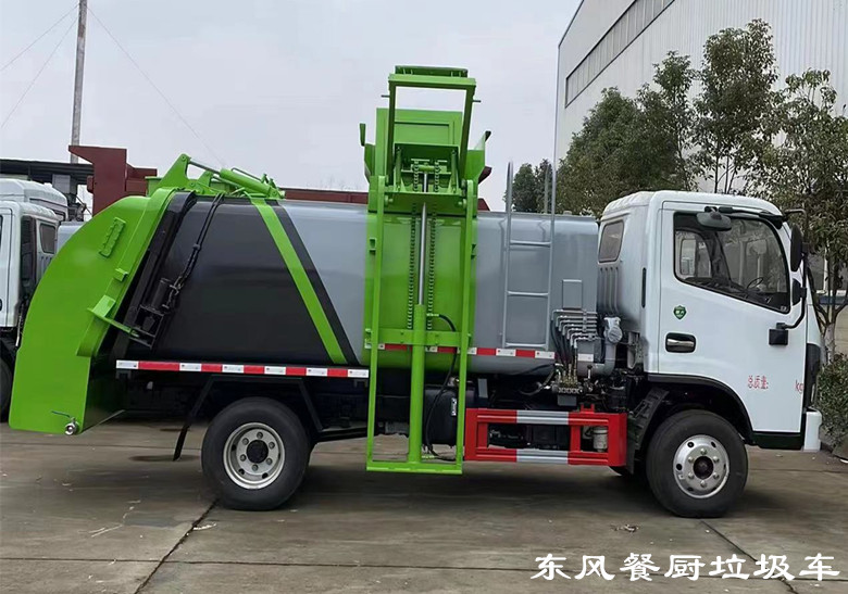 2. 裝卸機構(gòu)的自動化:餐廚垃圾車的裝卸機構(gòu)通常包括提升機、推板、刮板等部件。這些部件通過液壓系統(tǒng)的驅(qū)動,能夠自動完成垃圾的裝卸過程。例如,在裝載垃圾時,提升機可以自動將垃圾桶提升到一定高度,然后通過刮板將垃圾推入車廂。在卸載垃圾時,推板可以將垃圾從車廂中推出,實現(xiàn)自動卸載。