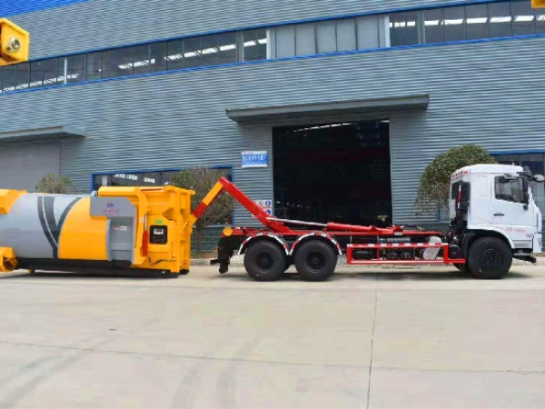 勾臂垃圾車【車廂可卸式垃圾車】車體和垃圾箱可完全分離,由液壓系統(tǒng)來完成收箱/放箱,在平日里可將車載垃圾箱放置到各個垃圾收集點,待垃圾收集滿后,該車可直接開赴收集點,通過液壓系統(tǒng)的操控,可將垃圾車后座上加裝的勾臂放下,掛住站內箱體前端的連接點,將垃圾箱拉**車體的后座上,此時即可開動車輛,將垃圾運送垃圾處理站內,進行自卸式傾倒,優(yōu)點就是可一車配多斗,一輛車就可以維持數個垃圾收集站的運轉,效率高,且箱體為密封式設計,不會造成二次污染。