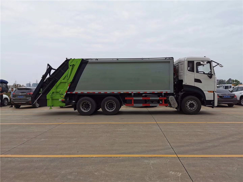 上裝配置:廂體圓弧設(shè)計(增強廂體承受力),Q345錳鋼板(高強度耐磨抗壓材質(zhì),罐體試用壽命更長),前后雙向壓縮,推鏟卸料,長源液壓泵,中梅多路換向閥,維森博樂油缸,高耐壓液壓油管,西門子PLC一鍵系統(tǒng)(駕駛室內(nèi)外均可操作),移動遙控器箱體操作,雙污水箱(前后各一個),邊燈,高位示廓燈,夜間作業(yè)燈。