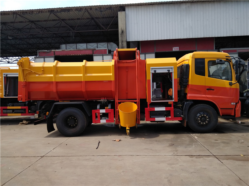 掛桶式糞污糞便清運(yùn)車配掛桶提升機(jī),可配合垃圾桶使用,通過液壓提升裝置可將垃圾桶內(nèi)污泥、糞污慢慢提升傾倒入車廂內(nèi),裝滿后運(yùn)輸?shù)绞占c(diǎn)進(jìn)行自卸式傾倒。適用于全國通用標(biāo)準(zhǔn)的120升、240升垃圾桶,鐵桶、塑料桶等。優(yōu)點(diǎn)在于一臺車可配多個垃圾桶使用,密封好,運(yùn)輸途中滴水不漏,駕駛室內(nèi)外兩用操控,司機(jī)師傅不下車在駕駛室內(nèi)即可完成箱體卸料。廣泛用于收運(yùn)含水污泥、糞污糞便、含水垃圾、淤泥等。
