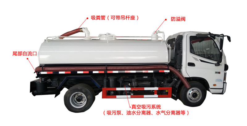 吸糞車專用部分由取力器、傳動(dòng)軸、真空吸污泵、油水分離器、水氣分離器、防溢閥、壓力罐體、液壓部分,管網(wǎng)系統(tǒng)、吸污導(dǎo)管、自流閥、真空壓力表、視糞窗、洗手裝置等組成。罐體采用Q235碳鋼板制作,罐體封頭一次壓鑄成型,吸污導(dǎo)管可自吸自排,隨車配置大功率真空吸污泵。