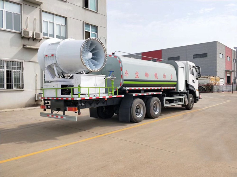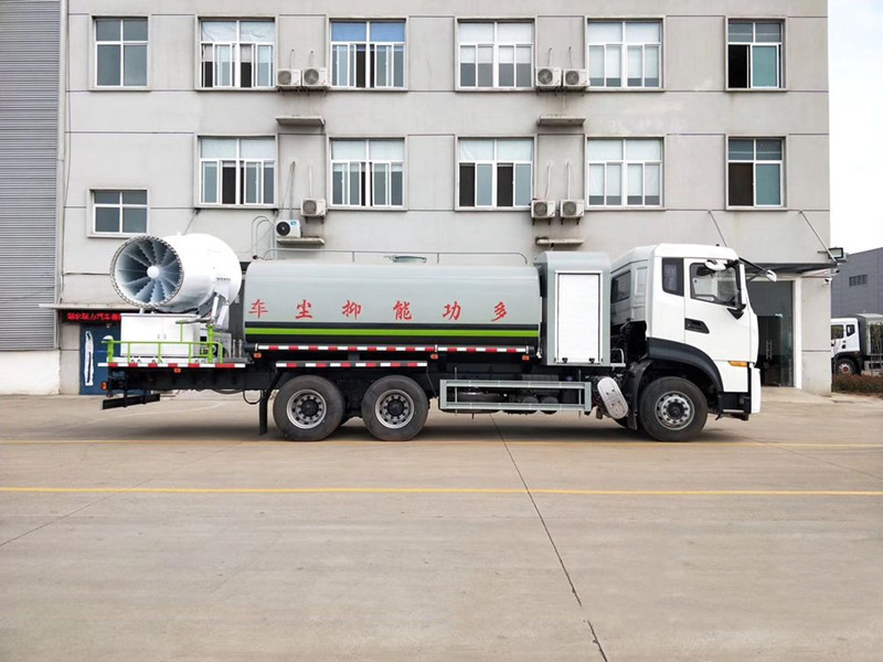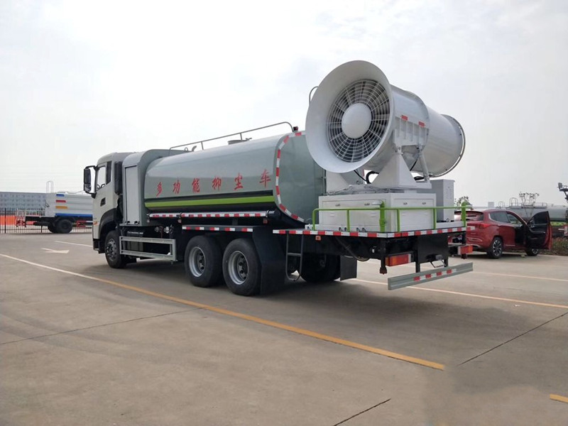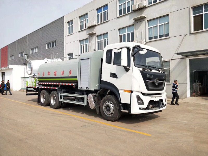 灑水車工作主要由發(fā)動(dòng)機(jī)帶動(dòng)變速箱,變速箱上安裝的取力器帶動(dòng)灑水車水泵產(chǎn)生動(dòng)力,將罐體內(nèi)部的水通過管路噴灑出去,水泵可自吸自排?筛鶕(jù)用戶需求選配抑塵霧炮。