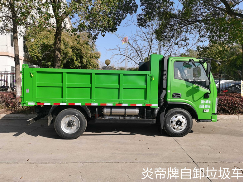 SZD5040ZLJDF6型自卸式垃圾車;外形尺寸:4995×1950×2160;貨廂尺寸:3200×1800×800;總質(zhì)量:4495kg。